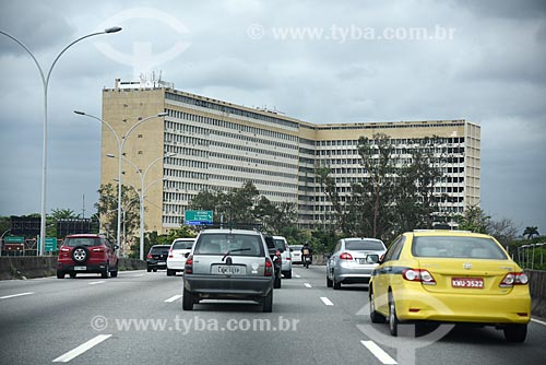 Subject: Traffic - Red Line (Linha Vermelha) with the University Hospital Clementino Fraga Filho in the background / Place: Cidade Universitaria neighborhood - Rio de Janeiro city - Rio de Janeiro state (RJ) - Brazil