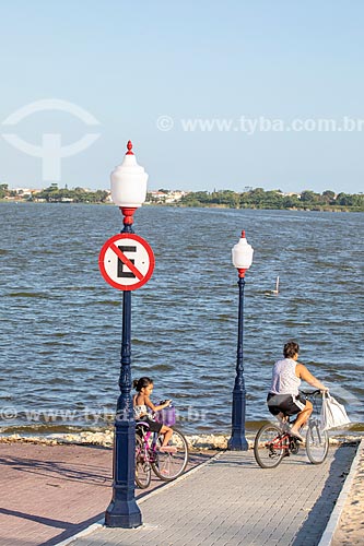 Subject: Mother and daughter riding bicycles - access ramp - Ze Garoto Waterfront (2018) - Barra de Marica Lagoon - also known as Boqueirao Lagoon / Place: Marica city - Rio de Janeiro state (RJ) - Brazil