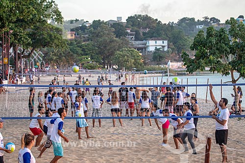 Subject: Youngs of the Esporte Presente Program - Department of Sport and Leisure of the Municipality of Marica playing beach volleyball - Aracatiba Lagoon waterfront / Place: Aracatiba neighborhood - Marica city - Rio de Janeiro state (RJ) - Brazil
