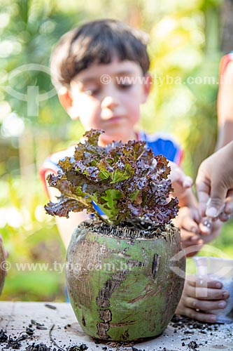 Subject: Municipal school student growing vegetables - Horta in the Coconut Project - Secretariat of Agriculture, Livestock and Fisheries of the Municipality of Marica / Place: Marica city - Rio de Janeiro state (RJ) - Brazil