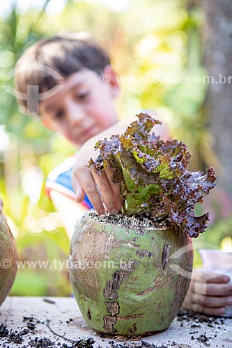 Subject: Municipal school student growing vegetables - Horta in the Coconut Project - Secretariat of Agriculture, Livestock and Fisheries of the Municipality of Marica / Place: Marica city - Rio de Janeiro state (RJ) - Brazil