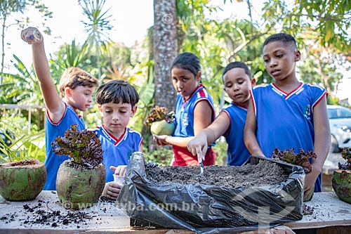 Subject: Municipal school students growing vegetables - Horta in the Coconut Project - Secretariat of Agriculture, Livestock and Fisheries of the Municipality of Marica / Place: Marica city - Rio de Janeiro state (RJ) - Brazil