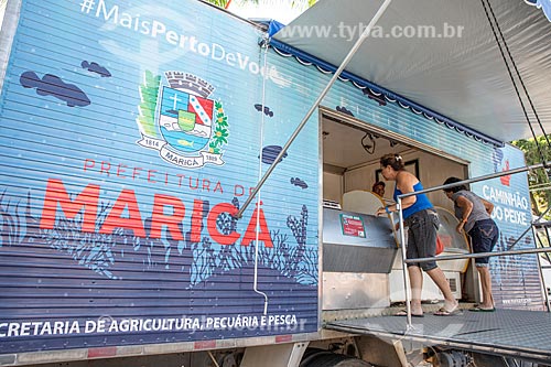 Subject: Women buying fish - Fish Truck Project - Secretariat of Agriculture, Livestock and Fisheries of the Municipality of Marica - project with the objective of selling fresh fish at low cost / Place: Marica city - Rio de Janeiro state (RJ) - Brazil