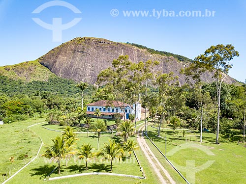 Subject: Picture taken with drone of the Itaocaia Farm - where the English scientist Charles Darwin stayed in 1832 during the expedition for research of the Atlantic Forest - with the Natural Monument Municipal of Rock of Itaocaia in the background / Place: Itaipuacu district - Marica city - Rio de Janeiro state (RJ) - Brazil