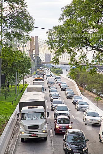 Subject: Traffic - south lane - Marginal Tiete - Professor Simao Faiguenboim Highway - with the Governador Orestes Quercia Brigde (2011) in the background / Place: Sao Paulo city - Sao Paulo state (SP) - Brazil