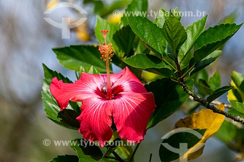 Subject: Detail of chinese hibiscus (Hibiscus rosa-sinensis) - Serrinha do Alambari Environmental Protection Area / Place: Resende city - Rio de Janeiro state (RJ) - Brazil