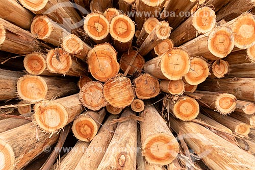 Subject: Detail of pile of eucalyptus - Veracel Celulose plantation / Place: Eunapolis city - Bahia state (BA) - Brazil