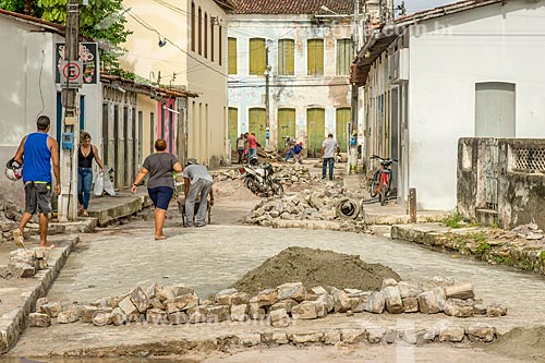 Subject: Labourer placing parallelepipeds street in the Laranjeiras city historic center / Place: Laranjeiras city - Sergipe state (SE) - Brazil