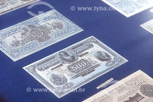 Subject: Detail of Brazilian currency - Reis - on exhibit - Casa dos Contos Museum - 1784 - Museum and Center for the Study of the Gold Boom - 2000s / Place: Ouro Preto city - Minas Gerais state (MG) - Brazil
