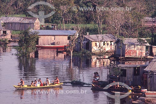 Subject: Houses - riparian community on the banks of the Solimoes River - 80s / Place: Amazonas state (AM) - Brazil