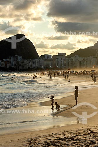 Subject: Bathers - Leme Beach during the sunset with the Cabritos Mountain (Kid Goat Mountain) in the background / Place: Leme neighborhood - Rio de Janeiro city - Rio de Janeiro state (RJ) - Brazil