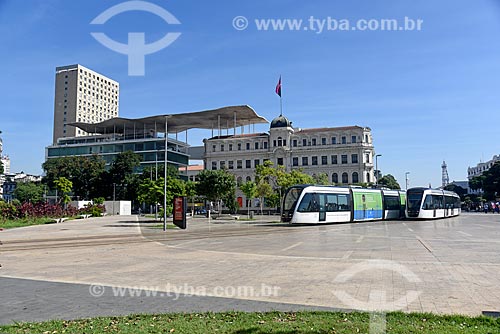 Subject: Light rail transit transiting on Maua Square with the Art Museum of Rio (MAR) in the background / Place: City center neighborhood - Rio de Janeiro city - Rio de Janeiro state (RJ) - Brazil