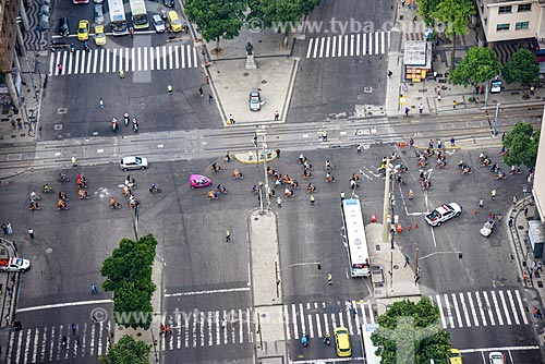 Subject: Aerial photo of the crossroad of Presidente Vargas Avenue with Rio Branco Avenue with cyclists during Bike Parade promoted by Velo-City event / Place: City center neighborhood - Rio de Janeiro city - Rio de Janeiro state (RJ) - Brazil