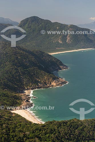 Subject: View of the Meio Beach (Middle Beach), Inferno Beach (Hell Beach) and the Grumari Beach from Pedra do Telegrafo (Telegraph Stone) - Guaratiba Mountain / Place: Grumari neighborhood - Rio de Janeiro city - Rio de Janeiro state (RJ) - Brazil