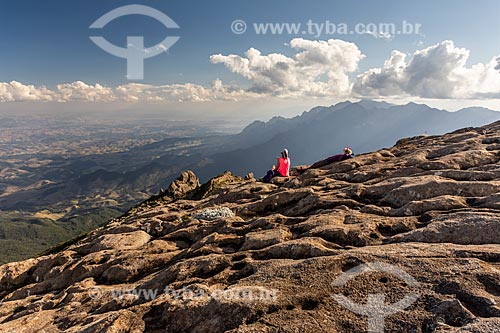 Subject: Woman observing landscape from Prateleiras Massif - Itatiaia National Park / Place: Itatiaia city - Rio de Janeiro state (RJ) - Brazil