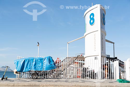[+] public service, [+] lifeguard station, [+] guardhouse of lifeguard, [+] Civil Defense, [+] fire department, [+] lifeguards, [+] tourism, [+] capital, [+] Southeast Region, [+] portuguese sidewalk, [+] portuguese stone, [+] hand cart, [+] cargo, [+] cargo transport, [+] cargo transportation, [+] cargo trolley, [+] transport, [+] sand, [+] Ipanema Beach, [+] coast, [+] seaside, [+] waterfront, [+] landform, [+] nature, [+] boardwalk, [+] floor, [+] pavement, [+] paving, [+] civil construction, [+] sea, [+] beach, [+] littoral, [+] beach chair