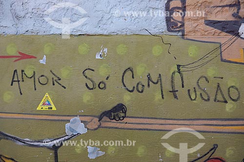 Subject: Detail of urban interventionism that says: Love only with fusion / Place: Santa Teresa neighborhood - Rio de Janeiro city - Rio de Janeiro state (RJ) - Brazil