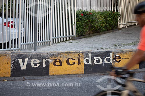 Subject: Detail of urban interventionism that says: Veracidade (Veracity) / Place: Santa Teresa neighborhood - Rio de Janeiro city - Rio de Janeiro state (RJ) - Brazil