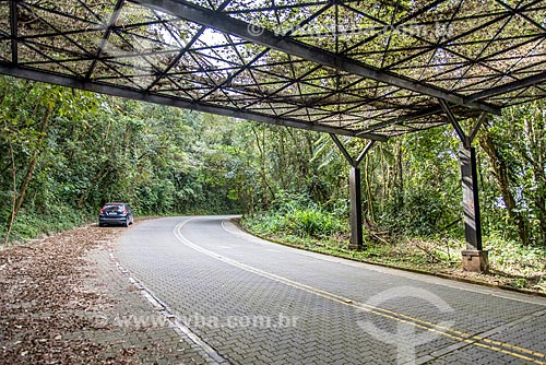 Subject: Metallic cover to contain tree fall on the Highway (RJ-165) Comendador Antonio Conti Park Road - Paraty-Cunha Park Road - Old Royal Road of the Caminho do Ouro / Place: Paraty city - Rio de Janeiro state (RJ) - Brazil