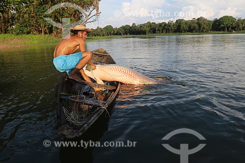 Subject: Fisherman during Pirarucu (Arapaima gigas) fishing - Piagacu-Purus Sustainable Development Reserve / Place: Beruri city - Amazonas state (AM) - Brazil