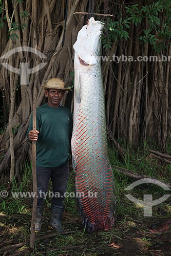 Subject: Fisherman during Pirarucu (Arapaima gigas) fishing - Piagacu-Purus Sustainable Development Reserve / Place: Beruri city - Amazonas state (AM) - Brazil