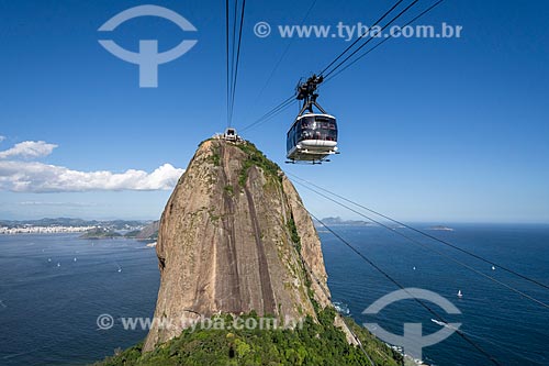 Subject: Cable car making the crossing between the Urca Mountain and Sugarloaf / Place: Urca neighborhood - Rio de Janeiro city - Rio de Janeiro state (RJ) - Brazil