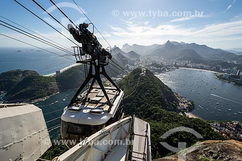 Subject: Cable car making the crossing between the Urca Mountain and Sugarloaf / Place: Urca neighborhood - Rio de Janeiro city - Rio de Janeiro state (RJ) - Brazil
