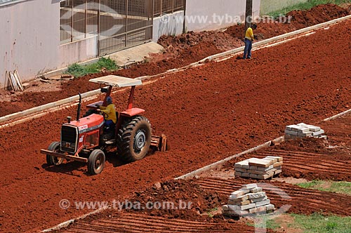 Subject: Tractor works in the preparation of soil in the street that will be paved / Place: Higienopolis neighborhood - Sao Jose do Rio Preto city - Sao Paulo state (SP) - Brazil