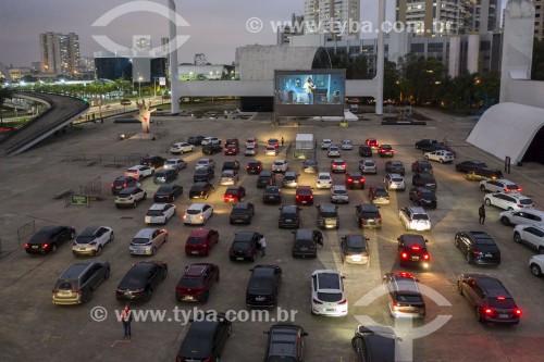 Subject: Picture taken with drone of the Belas Artes drive-in cinema at the Latin America Memorial (1989) during the Coronavirus Crisis / Place: Sao Paulo city - Sao Paulo state (SP) - Brazil