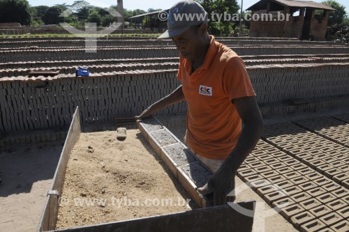 Subject: Man manually producing bricks in pottery / Place: Jose Bonifacio city - Sao Paulo state (SP) - Brazil