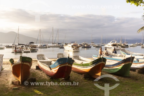 Subject: Colorful fishing boats on Santa Teresa Beach / Place: Ilhabela city - Sao Paulo state (SP) - Brazil