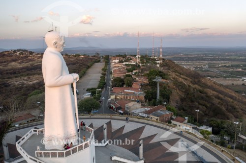 Subject: Picture taken with drone of the Statue of Padre Cicero (1969) - Horto Hill / Place: Juazeiro do Norte city - Ceara state (CE) - Brazil