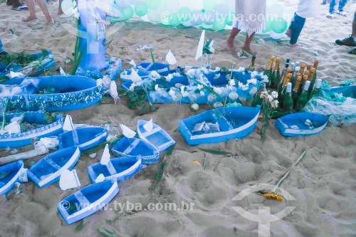 Subject: Offerings at the feast of Yemanja - Copacabana Beach / Place: Copacabana neighborhood - Rio de Janeiro city - Rio de Janeiro state (RJ) - Brazil