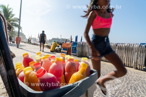 Subject: Basket with natural juices for sale on the promenade of Arpoador Beach / Place: Ipanema neighborhood - Rio de Janeiro city - Rio de Janeiro state (RJ) - Brazil