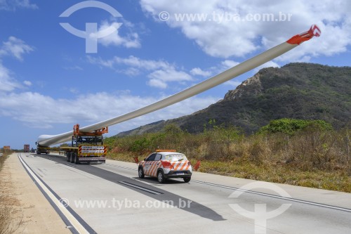 Subject: Truck transporting a wind turbine blade on the BR-222 highway / Place: Caucaia city - Ceara state (CE) - Brazil