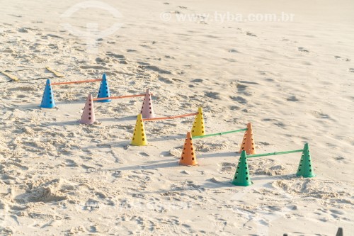 Subject: Cones used in exercises on Post 6 of Copacabana Beach / Place: Copacabana neighborhood - Rio de Janeiro city - Rio de Janeiro state (RJ) - Brazil