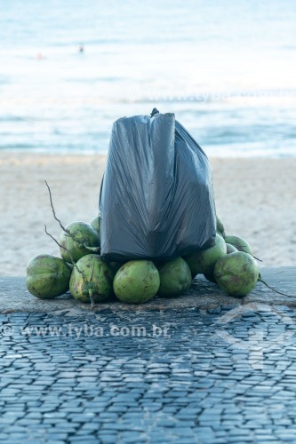 Subject: Coconuts for sale at a kiosk on Copacabana Beach / Place: Copacabana neighborhood - Rio de Janeiro city - Rio de Janeiro state (RJ) - Brazil
