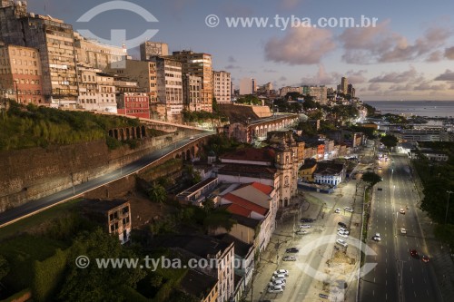 Subject: Picture taken with drone of the high city and low city with Nossa Senhora da Conceiçao da Praia Church / Place: Salvador city - Bahia state (BA) - Brazil