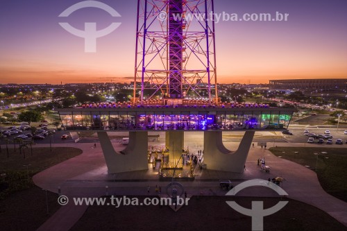 [+] television tower, [+] Pilot Plan, [+] monumental axis, [+] material heritage, [+] lawn, [+] garden, [+] grass, [+] Burle Marx Garden, [+] technology, [+] metal structure, [+] communication, [+] aerial view, [+] aerial photo, [+] aerial, [+] transmit antenna, [+] Federal District, [+] tower, [+] world heritage, [+] antenna, [+] Midwest Region, [+] architecture, [+] Brasilia, [+] tourism, [+] telecommunication tower, [+] historic heritage, [+] evening, [+] twilight, [+] dusk, [+] sunset, [+] nightfall, [+] illumination, [+] light, [+] electric light, [+] urban illumination, [+] infrastructure