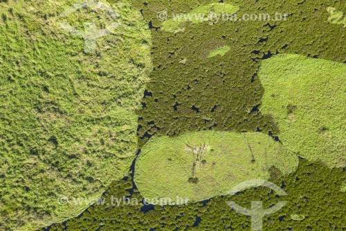 Subject: Picture taken with drone of Lake in the flooded landscape of the Pantanal - Refugio Caiman / Place: Miranda city - Mato Grosso do Sul state (MS) - Brazil