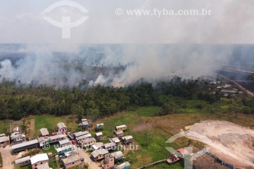 Subject: Picture taken with drone of the burning of floodplain vegetation in the Amazon rainforest / Place: Iranduba city - Amazonas state (AM) - Brazil