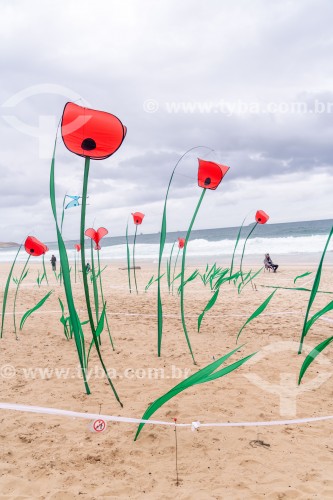 Subject: Scenic plastic flowers in honor of Bossa Nova on the sands of Ipanema Beach / Place: Ipanema neighborhood - Rio de Janeiro city - Rio de Janeiro state (RJ) - Brazil