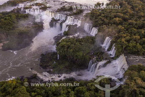 Subject: Picture taken with drone of waterfalls in Iguaçu National Park - Border between Brazil and Argentina / Place: Foz do Iguacu city - Parana state (PR) - Brazil