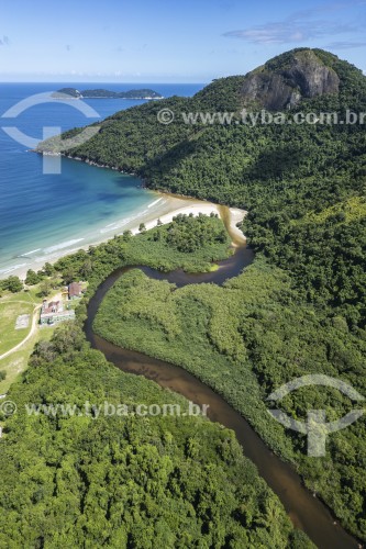 Subject: Picture taken with drone of mouth of river - Dois Rios Beach waterfront / Place: Ilha Grande District - Angra dos Reis city - Rio de Janeiro state (RJ) - Brazil