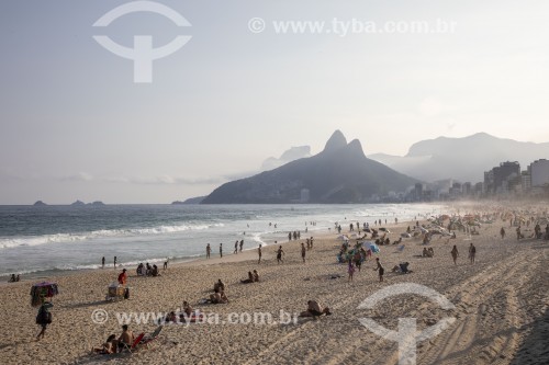 Subject: Leblon Beach waterfront with Two Brothers Mountain in the background / Place: Leblon neighborhood - Rio de Janeiro city - Rio de Janeiro state (RJ) - Brazil