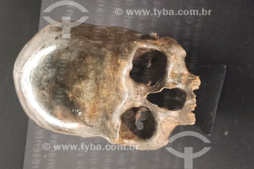Subject: Skull of the Lagoa Santa Man collected during Peter Lunds paleontology and archaeology expedition - 1835-1845 - Collection of the Brazilian Historical and Geographical Institute (IHGB) / Place: City center neighborhood - Rio de Janeiro city - Rio de Janeiro state (RJ) - Brazil