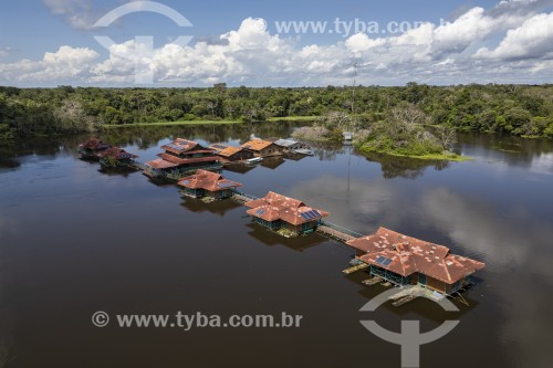 Subject: Picture taken with drone of the Uakari Lodge Floating Inn- Mamiraua Sustainable Development Reserve / Place: Alvaraes city - Amazonas state (AM) - Brazil