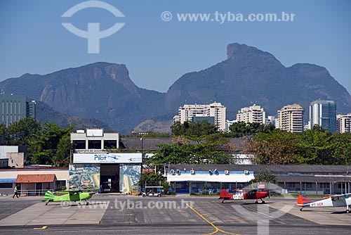 •  Helicopter - runway of the Roberto Marinho Airport - also known as Jacarepagua Airport - with the Rock of Gavea in the background  - Rio de Janeiro city - Rio de Janeiro state (RJ) - Brazil