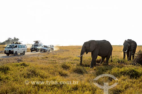 Subject: Vans with tourists watching elephants - Amboseli National Park / Place: Rift Valley - Kenya - Africa / Date: 09/2012