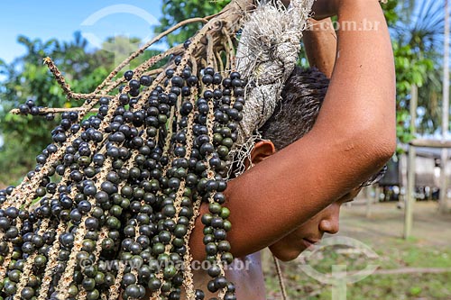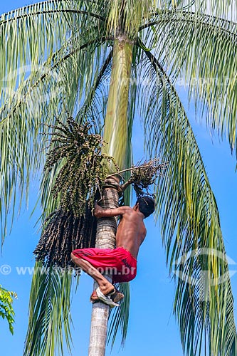 Riverine young harvesting acai - Anama Sustainable Development Reserve - Barcelos city - Amazonas state (AM) - Brazil
